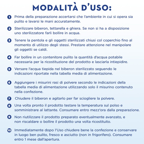 Per la salute del neonato, è fondamentale attenersi scrupolosamente alle istruzioni di preparazione.