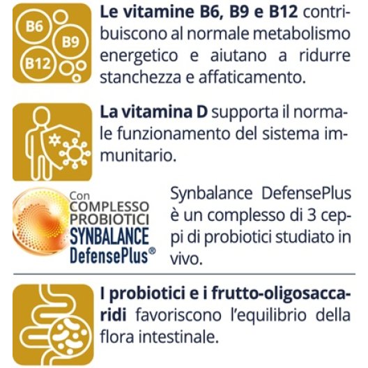 Energia e Riduzione Affaticamento: Le Vitamine B6, B9 (Acido Folico) e B12 contribuiscono al normale metabolismo energetico e aiutano a ridurre stanchezza e affaticamento psico-fisico.