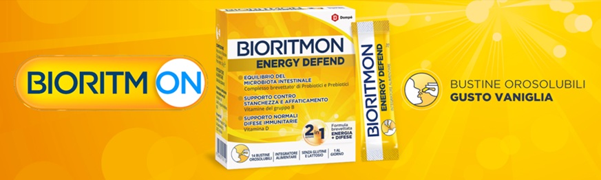 Bioritmon Energy Defend è l'innovativo integratore alimentare in bustine orodispersibili, formulato con una doppia azione brevettata 2in1: Energia + Difese Immunitarie. Questo prodotto unisce un complesso studiato di 3 ceppi probiotici e prebiotici con vitamine essenziali come la Vitamina D e quelle del Gruppo B. È la soluzione ideale per chi desidera sostenere l'organismo nei periodi di maggiore stress o affaticamento, partendo dall'equilibrio intestinale.