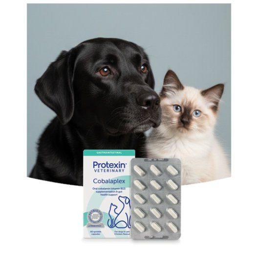 Cobalaplex è un integratore alimentare di alta qualità, clinicamente testato per normalizzare i livelli di Cobalamina (Vitamina B12) e Acido Folico (Vitamina B9) nei cani e nei gatti. Spesso le carenze di queste vitamine sono legate a patologie gastrointestinali croniche o malassorbimento; Cobalaplex interviene con una formula completa che supporta non solo i livelli vitaminici, ma anche la salute dell'intestino.