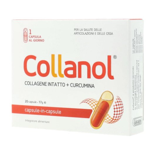 Collanol contribuisce al normale funzionamento dell’apparato locomotore, aiutando a mantenere le normali condizioni delle ossa, delle articolazioni e delle cartilagini. Collanol è prodotto secondo la tecnologia brevettata DUOCAP (capsula-nella-capsula) per l'inserimento combinato ed il rilascio a due fasi degli ingredienti.