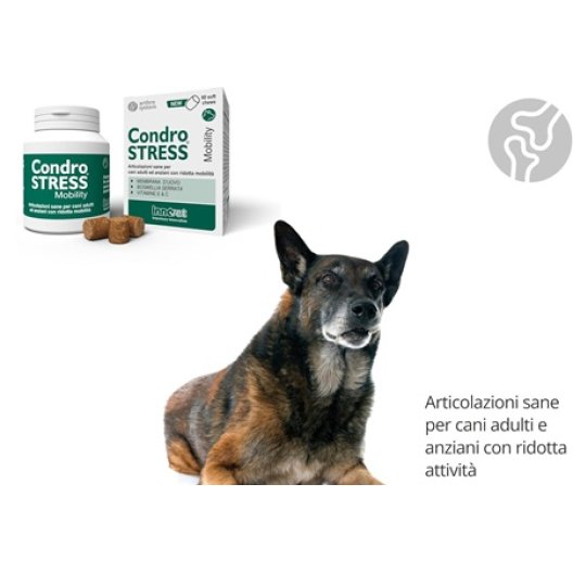 Condrostress® Mobility è l'alimento complementare specificamente formulato per supportare la corretta funzione articolare e migliorare la mobilità di cani adulti e anziani che manifestano i primi segni di rigidità (es. difficoltà ad alzarsi, fatica a salire le scale). Queste 60 soft chews (bocconcini morbidi) sono facili da somministrare e agiscono con una formula avanzata che nutre il metabolismo cartilagineo e protegge l'ambiente articolare dallo stress ossidativo. La chiave dell'efficacia risiede nella Membrana d’uovo, una matrice biologica ricca di elementi essenziali per la cartilagine, affiancata dall'azione lenitiva della Boswellia serrata.