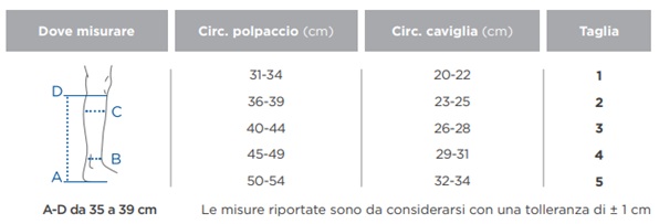 - Compressione Certificata: Pressione alla caviglia compresa tra 23-32 mmHg, con gradiente decrescente verso il polpaccio.
