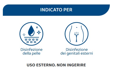Uso Esterno: Il prodotto deve essere utilizzato esclusivamente per lavaggi o impacchi cutanei. Non ingerire.