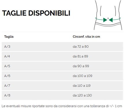 Taglia A/3, circonferenza vita da 72 a 80 cm