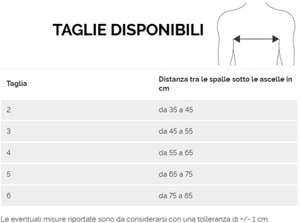 Taglia 5 - distanza tra le spalle sotto le ascelle da 65 a 75 cm.