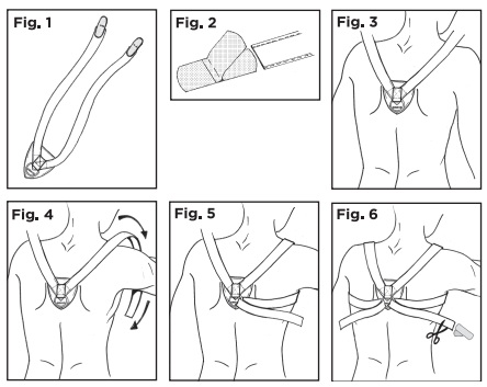 Posizionamento Scudo (Fig. 3): Collocare lo scudo imbottito tra le scapole, assicurandosi che il logo Dr. GIBAUD® sia rivolto verso il basso.