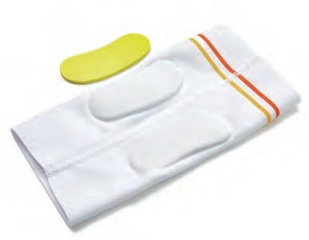 - Posizionare i due cuscinetti anatomici in modo che corrispondano esattamente all'epicondilo (parte esterna) e all'epitroclea (parte interna).