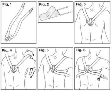 Design a "8": Doppia cinghia che simula il classico bendaggio funzionale a otto per la clavicola.