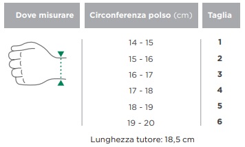 1 Tutore Taglia 6 Sinistro - Circonferenza polso da 19 a 20 cm - Lunghezza tutore 18,5 cm