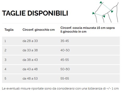 Taglia 1 - Circonferenza ginocchio da 28 a 33 cm - Circonferenza coscia da 35 a 45 cm - Altezza 32,5 cm