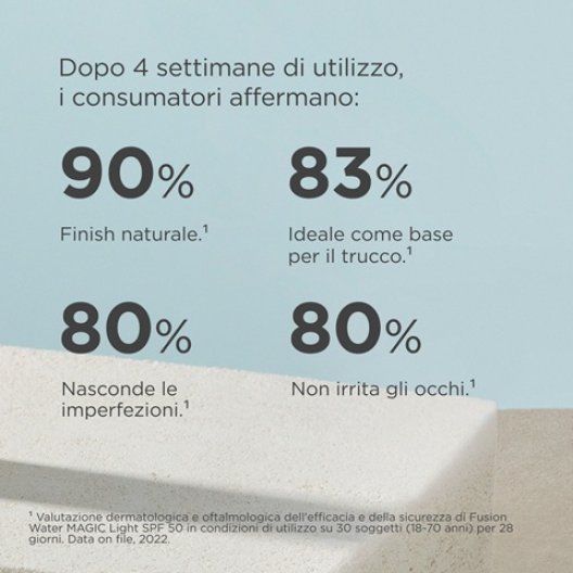 Fusion Water MAGIC Color Light unisce la massima protezione solare con un'azione cosmetica perfezionatrice, ideale per i toni di pelle chiari: