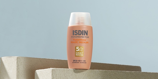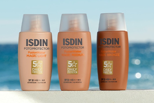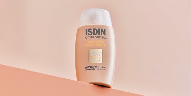 ISDIN Fotoprotector Fusion Water MAGIC Light SPF 50 è un fotoprotettore viso quotidiano (5 Star Daily Protection) con altissima protezione UV (SPF 50) e una colorazione naturale Light. La sua texture ultraleggera Fusion Water a base acquosa garantisce un assorbimento immediato, uniforma l'incarnato e dissimula le imperfezioni per un aspetto sano (bonne mine). È arricchito con Acido Ialuronico e Mediterranean Alga Extract per idratazione e potente azione antiossidante.