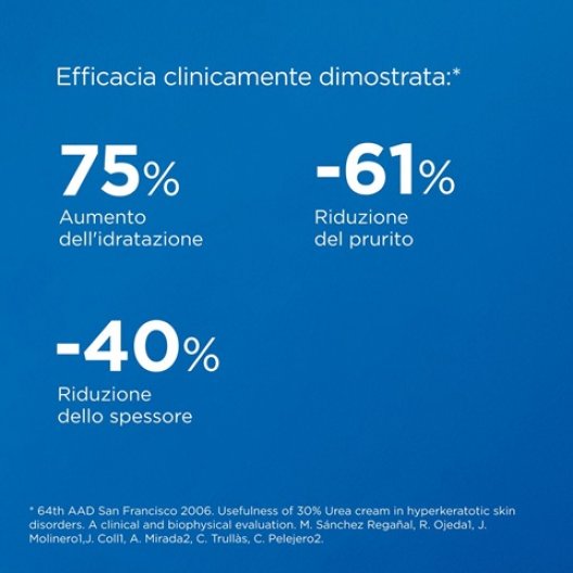 Ureadin Ultra 30 è il trattamento d'urto per le aree con ispessimento cronico. La sua efficacia è clinicamente provata: