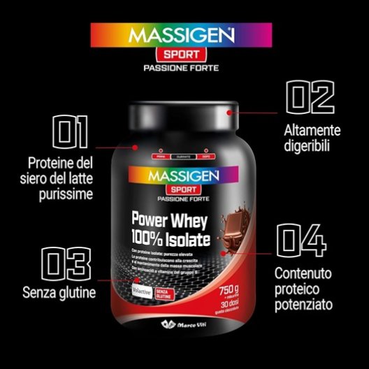 Massigen Power Whey 100% Isolate Cioccolato - 750g: Eccellenza Volactive®