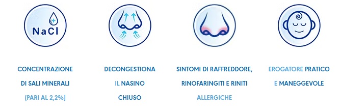 Spruzzare una volta in ciascuna narice mentre il bambino inspira delicatamente. Utilizzare 1 o 2 volte al giorno, in base alle necessità.