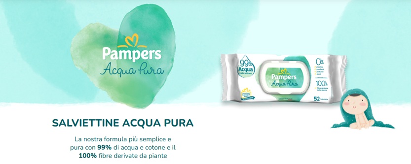 La formula di Pampers Acqua Pura è una delle più semplici e pure sul mercato, combinando idratazione e delicatezza: