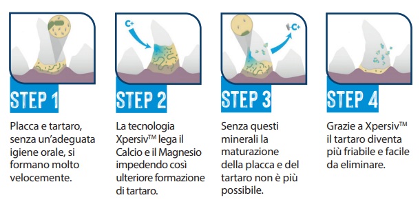 Contrasta il Tartaro: Blocca la formazione del tartaro sopra-gengivale e ammorbidisce quello esistente, facilitando le pulizie dentali professionali (detartrasi).