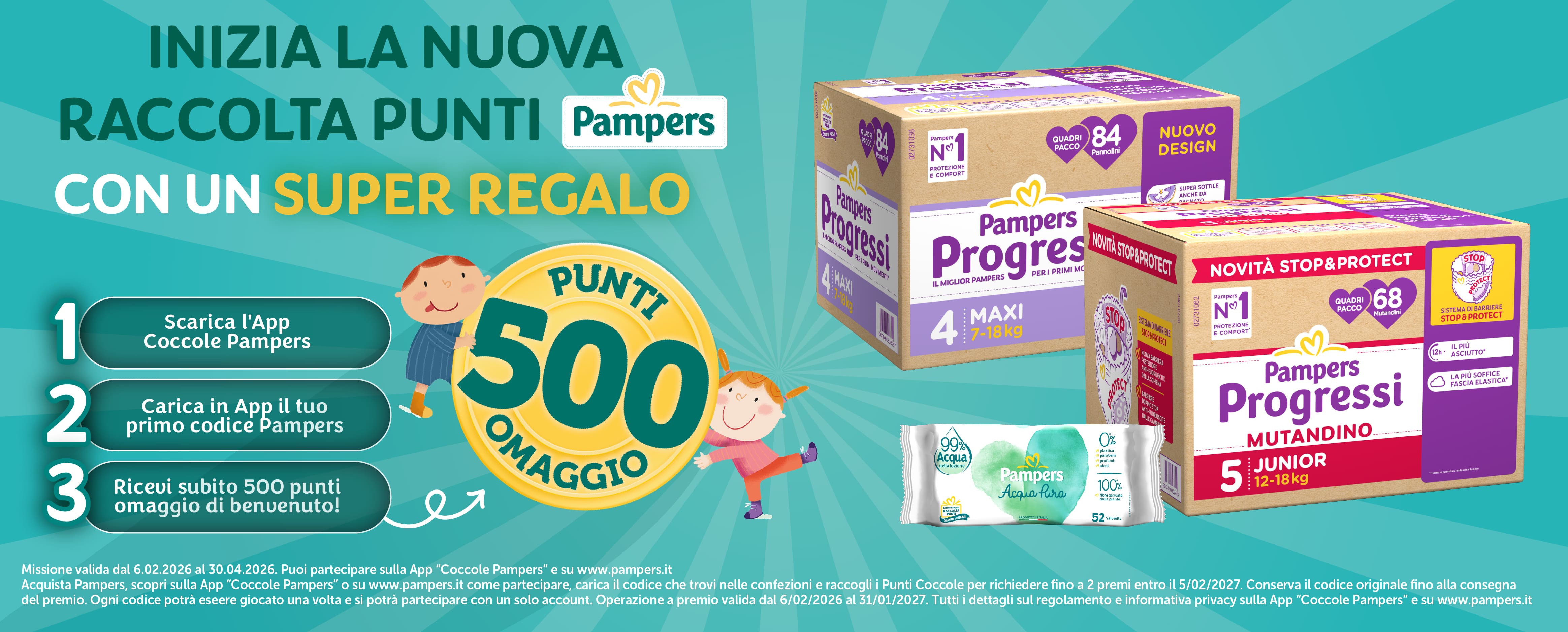 Partecipare è semplice: basta scaricare l’App Coccole Pampers, inserire il primo codice presente sulle confezioni dei prodotti Pampers e ricevere subito 500 punti omaggio di benvenuto. In questo modo potrai iniziare immediatamente a raccogliere punti e avvicinarti ai premi disponibili.