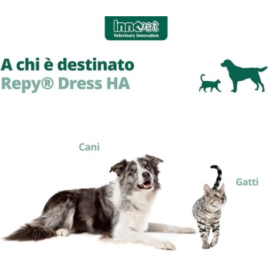 Repy Dress HA è un dressing sterile monouso avanzato, specificamente formulato per favorire la corretta cicatrizzazione di lesioni cutanee di qualsiasi origine in cani e gatti (traumi, chirurgia, bruciature, avulsioni, lesioni da grattamento). Ogni garza è realizzata in puro cotone 100% ed è imbevuta di una soluzione che unisce l'efficacia del Miele di Manuka di grado medico e dell'Adelmidrol. Questa combinazione crea un ambiente ottimale per la guarigione, mantenendo la giusta umidità, controllando la microflora superficiale e riducendo l'infiammazione e il rossore.