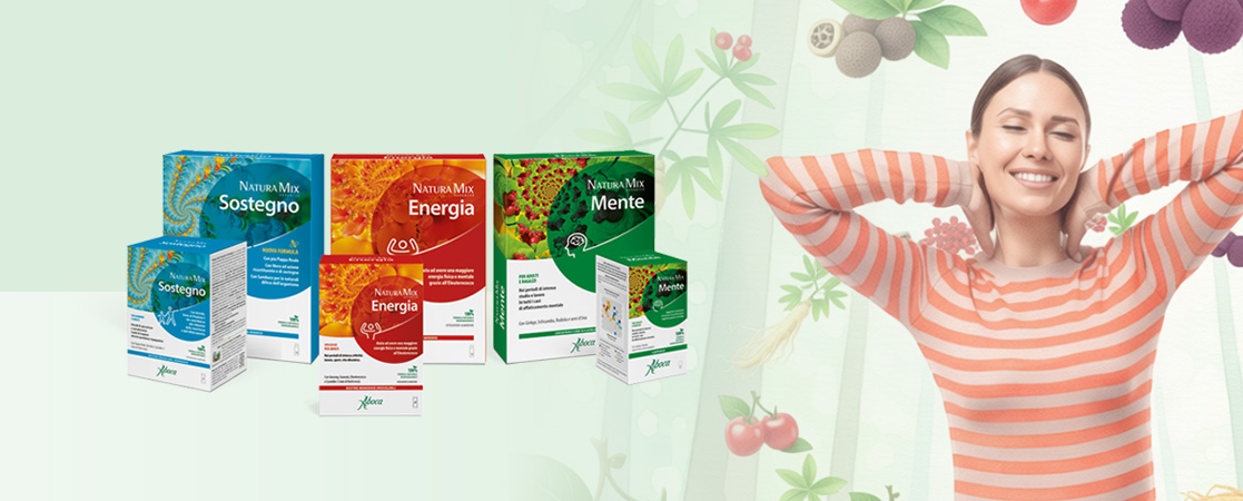 Natura Mix Energia: Indicato in caso di affaticamento fisico e mentale, aiuta a contrastare la sensazione di stanchezza e a sostenere la vitalità quotidiana.