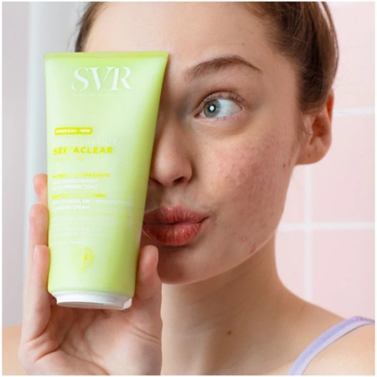 SVR Sebiaclear Crème Lavante è il detergente specifico per chi deve gestire le imperfezioni ma si ritrova con una pelle secca, che "tira" o irritata da trattamenti dermatologici aggressivi. A differenza dei classici gel schiumogeni, questa crema detergente purifica con estrema dolcezza, restituendo comfort e morbidezza a viso e corpo.