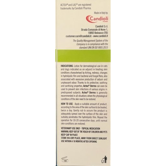 Actea Dermo è la soluzione dermatologica ideale per il trattamento coadiuvante delle condizioni cutanee che causano prurito, arrossamento, alterazioni del film idrolipidico e della flora batterica e fungina nei tuoi amici a quattro zampe. Questa lozione dermatologica è indicata anche in presenza di produzione eccessiva di sebo e cattivo odore. Grazie alle sue proprietà protettive, lenitive ed igienizzanti, Actea Dermo può essere utilizzato con successo anche nella prevenzione di affezioni cutanee di varia origine nei soggetti predisposti.