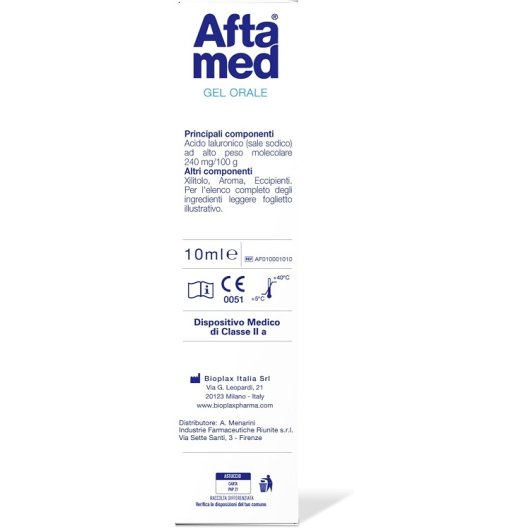 AftaMed Gel Orale è un trattamento topico specifico per afte, ulcere e piccole lesioni dolorose del cavo orale. La sua formulazione brevettata, a base di acido ialuronico ad alto peso molecolare, xilitolo e agenti filmogeni, forma una barriera protettiva duratura sulla lesione, favorendo la guarigione naturale e alleviando rapidamente il dolore.
