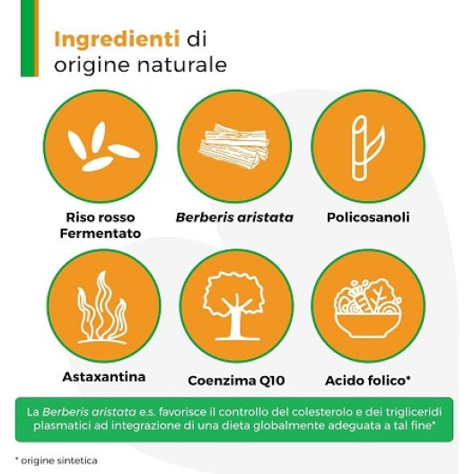 - Riso rosso fermentato (2,8 mg di Monacoline per compressa)