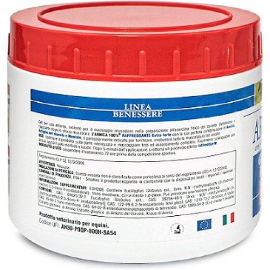 Arnica, Artiglio del Diavolo e Mentolo: La combinazione di questi ingredienti offre una tonificazione e un rafforzamento eccezionale per la muscolatura del cavallo.