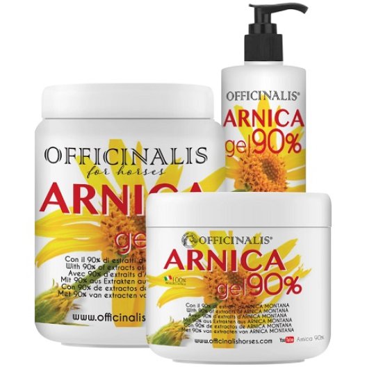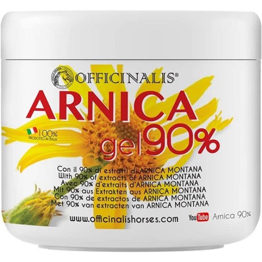 Il Gel all'Arnica per Cavalli al 90% è stato sviluppato sulla base della famosa formulazione Arnica gel Officinalis, utilizzata con successo dal 1999 su muscoli e tendini di migliaia di cavalli da corsa in tutto il mondo. Questo gel è stato impiegato anche durante le Olimpiadi di Atene su cavalli da galoppo e da trotto, inclusi campioni come il leggendario Varenne. Grazie al Brevetto Officinalis, la sua formula unica si avvale principalmente dell'estratto in acqua di fiori di Arnica, lavorando in sinergia con estratti concentrati per garantire un efficace sollievo.