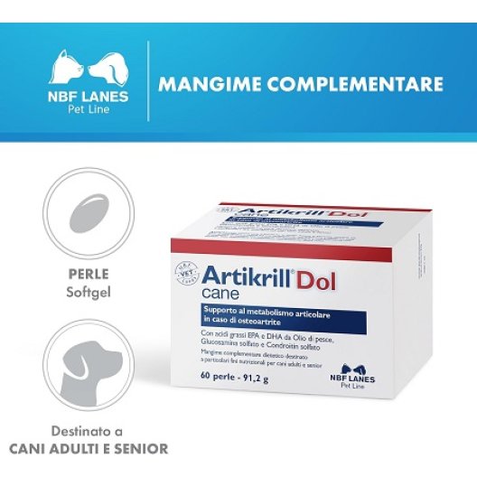 Artikrill Dol Cane - 60 Perle - Integratore Articolazioni per Cani con Artrosi