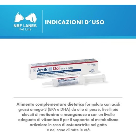 Artikrill Dol Pasta NBF Lanes: Sollievo e Supporto Articolare per Cani e Gatti (Siringa 30g)