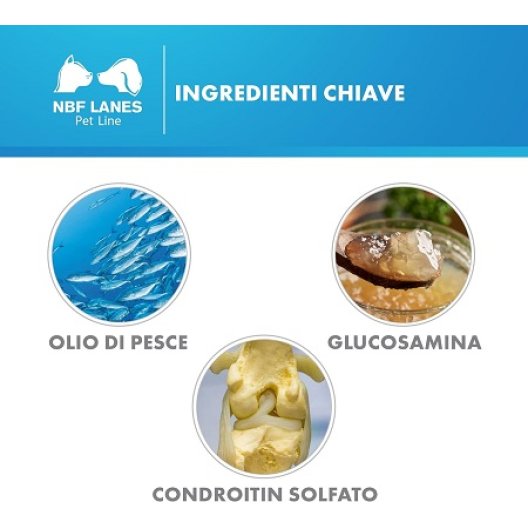 Olio di pesce (18% EPA – 12% DHA), Glucosamina da fermentazione, Condroitin solfato, Olio di krill, Vitamina E, L-carnitina, DL-metionina, Manganese solfato. Additivi: Coloranti naturali (E172, E712, E141), Aromi naturali per migliore appetibilità.