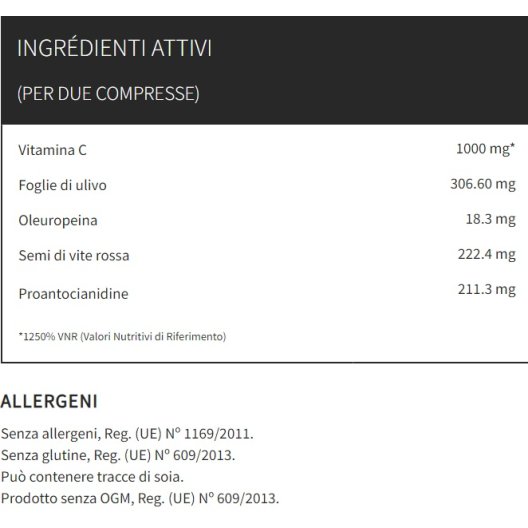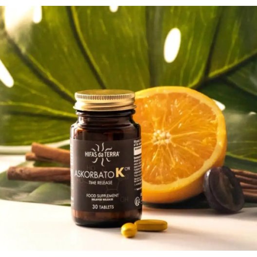 Askorbato K è un integratore a base di acido ascorbico, sale di potassio (acido ascorbico e bicarbonato di potassio), estratto di semi di vite rossa (titolato al 95% in proantocianidine) ed estratto secco di foglie d’ulivo (titolato al 6% in oleuropeina).