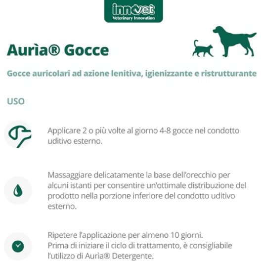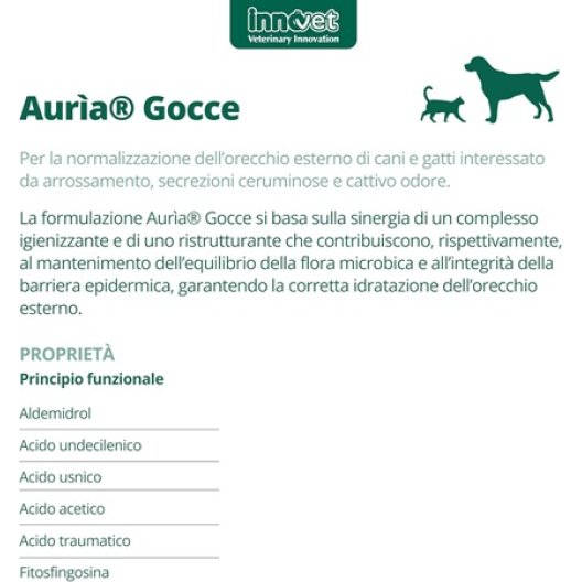 Aurìa Gocce è una soluzione auricolare innovativa, studiata specificamente per la cura e la protezione del condotto uditivo esterno di cani e gatti. Essenziale per l'igiene quotidiana e per il trattamento di supporto, questo prodotto agisce con un'efficace azione lenitiva, igienizzante e ristrutturante. È la soluzione ideale quando si notano segni di arrossamento, eccesso di cerume o cattivo odore. La sua formula avanzata aiuta a mantenere l'equilibrio della microflora dell’orecchio, prevenendo i disagi frequenti e supportando l'integrità della barriera epidermica.