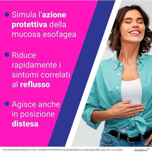 Complesso Brevettato Xiloglucano-Glicerolo: Produce un film mucoadesivo persistente sulla mucosa esofagea, rafforzando la sua protezione dagli agenti irritativi come l'acido gastrico.