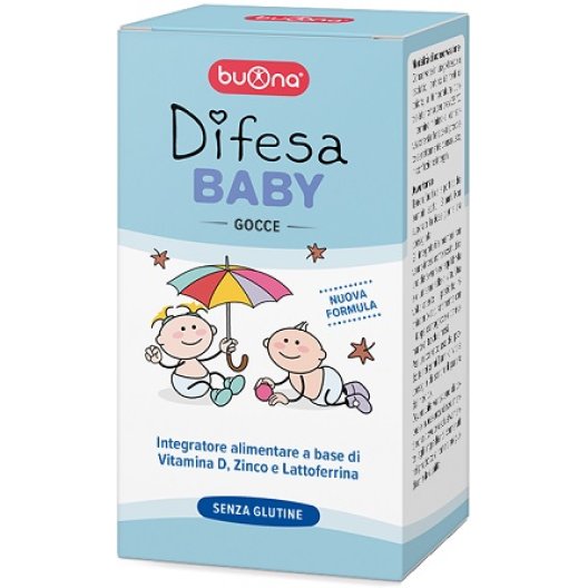 Buona Difesa Baby è un integratore alimentare in gocce appositamente formulato per bambini e lattanti. Contiene una combinazione di Vitamina D, Zinco e Lattoferrina, nutrienti essenziali per sostenere il sistema immunitario e favorire lo sviluppo delle ossa.