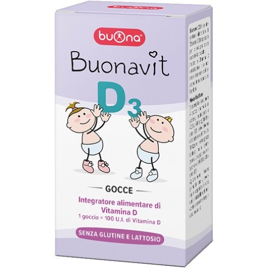 Buonavit D3 Gocce è un integratore di Vitamina D3 formulato appositamente per neonati e bambini per favorire lo sviluppo osseo durante la crescita. Ogni goccia fornisce 100 UI di Vitamina D3, contribuendo al mantenimento di livelli normali di calcio nel sangue e alla normale funzione del sistema immunitario.