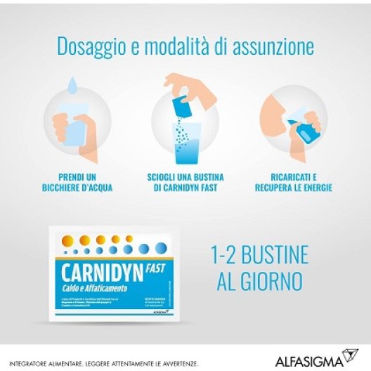 Modalità d'Uso: Si consiglia l'assunzione giornaliera di Carnidyn Fast come parte di una dieta equilibrata: