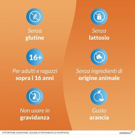 - Magnesio: Riduce la stanchezza fisica e l'affaticamento, supporta la funzione muscolare e contribuisce all'equilibrio elettrolitico/idrosalino. Favorisce il normale funzionamento del sistema nervoso.