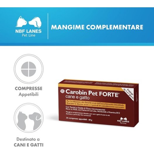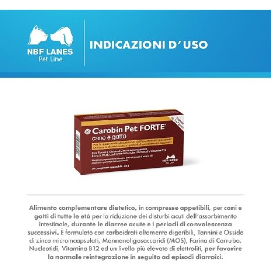 Carobin Pet Forte NBF Lanes: Supporto Intestinale Avanzato per Cani e Gatti con Diarrea (30 Compresse)