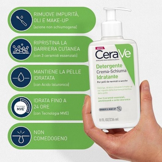 Cerave Detergente Crema-Schiuma idratante per pelli da normali a secche - 236 ml