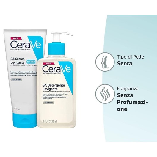 CeraVe SA Detergente Levigante con Acido Salicilico per Pelle Secca e Screpolata - Senza Profumo