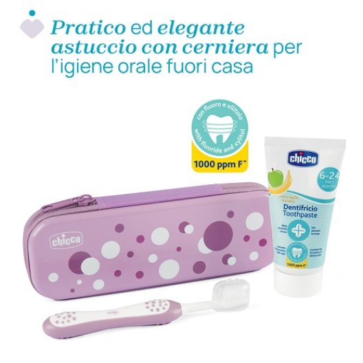 Chicco Set primi dentini Rosa - dentifricio e spazzolino con custodia 6 mesi+
