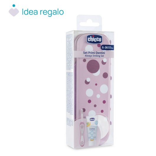 Chicco Set Primi Dentini - Dentifricio e Spazzolino con Astuccio Rosa (6-36 mesi)