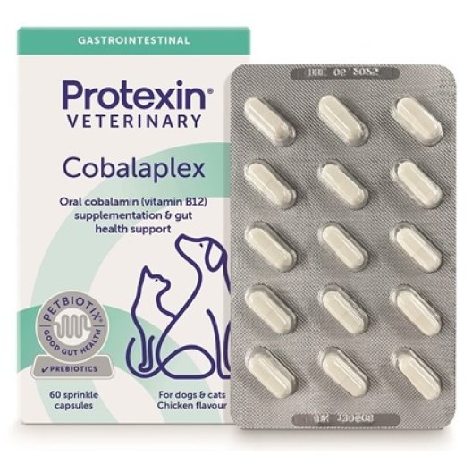 Cobalaplex è un integratore alimentare di alta qualità, clinicamente testato per normalizzare i livelli di Cobalamina (Vitamina B12) e Acido Folico (Vitamina B9) nei cani e nei gatti. Spesso le carenze di queste vitamine sono legate a patologie gastrointestinali croniche o malassorbimento; Cobalaplex interviene con una formula completa che supporta non solo i livelli vitaminici, ma anche la salute dell'intestino.
