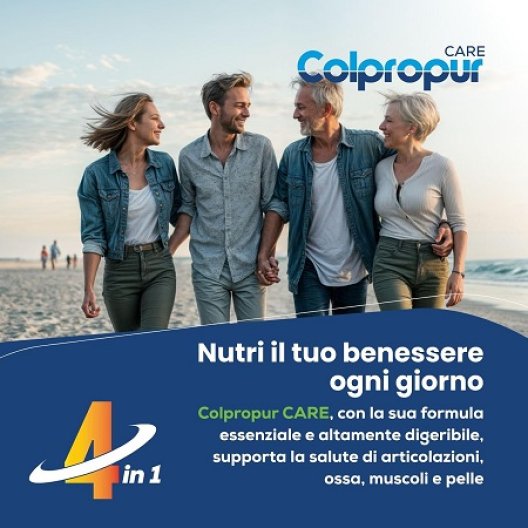Colpropur Care Gusto Vaniglia è un integratore alimentare a base di collagene idrolizzato altamente digeribile, combinato con vitamina C, ideato per sostenere il benessere di ossa, articolazioni e pelle. Formulato per contrastare la naturale perdita di collagene con l’età, aiuta a mantenere la vitalità e l’energia dell’organismo.