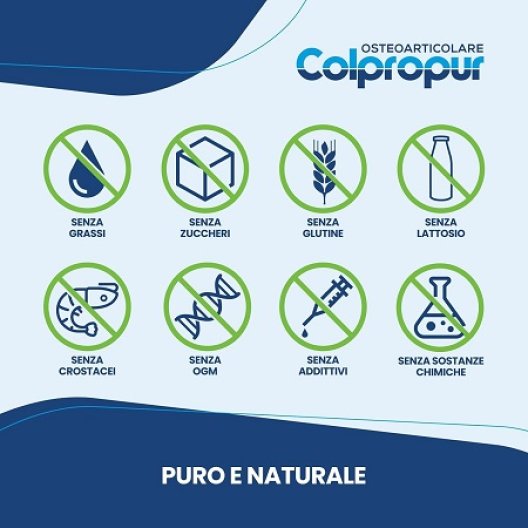 Colpropur Osteoarticolare è un integratore alimentare in polvere pensato per sostenere ossa e articolazioni. Contiene Phoscollagen®, un esclusivo composto a base di collagene idrolizzato, calcio e fosforo, combinato con altri ingredienti essenziali per mantenere il benessere muscolo-scheletrico.