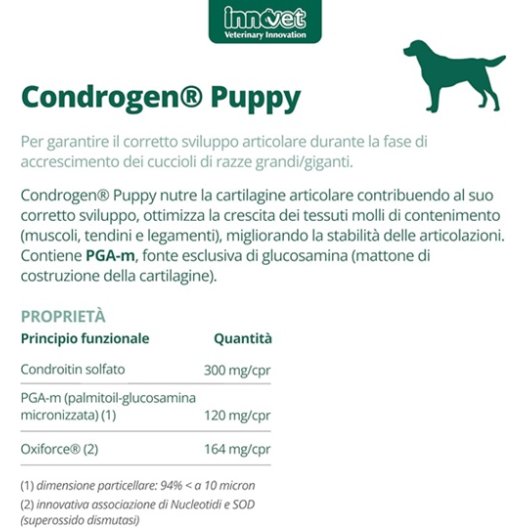 Condrogen Puppy è un alimento complementare con principi funzionali ad alta concentrazione: